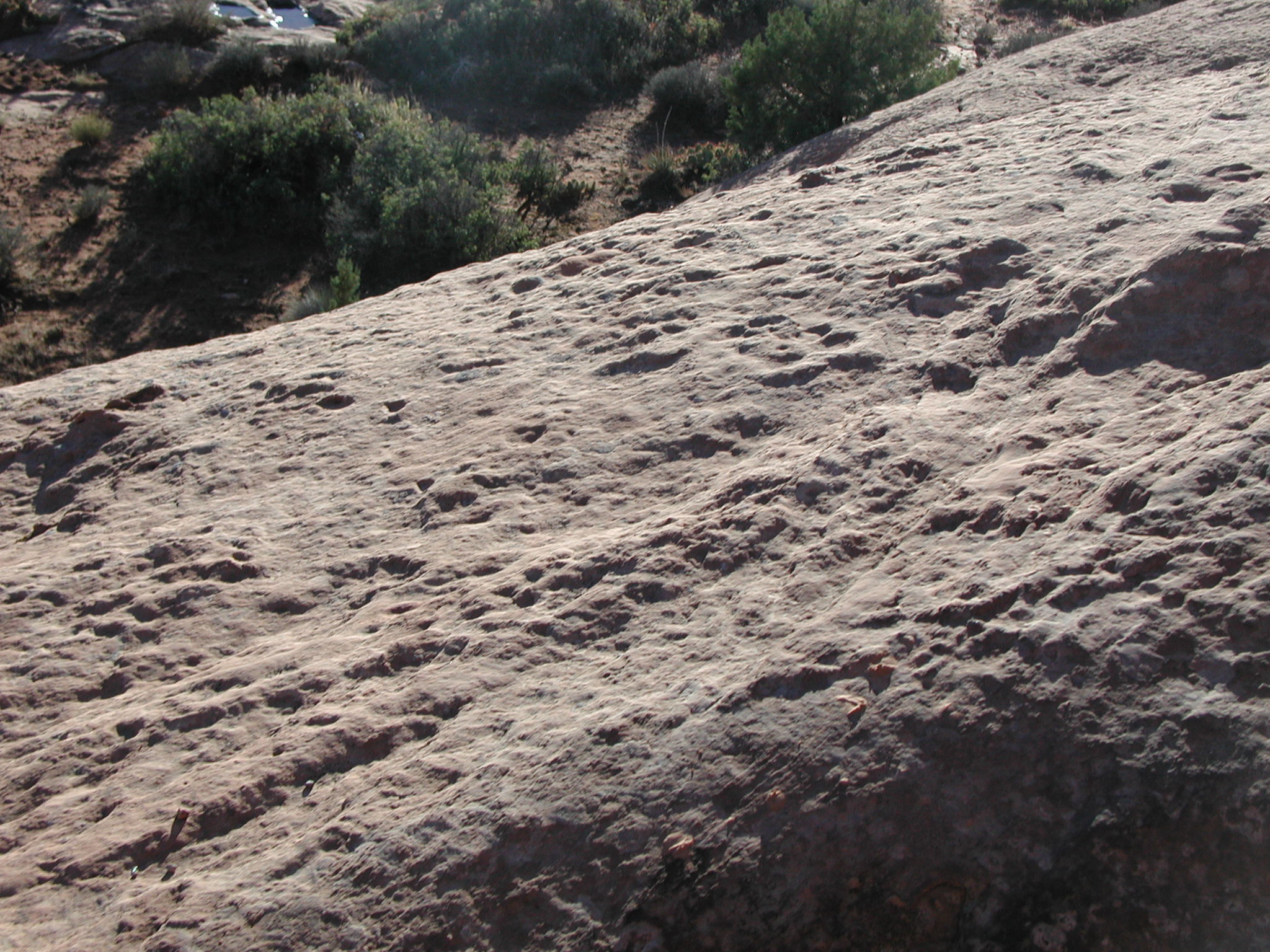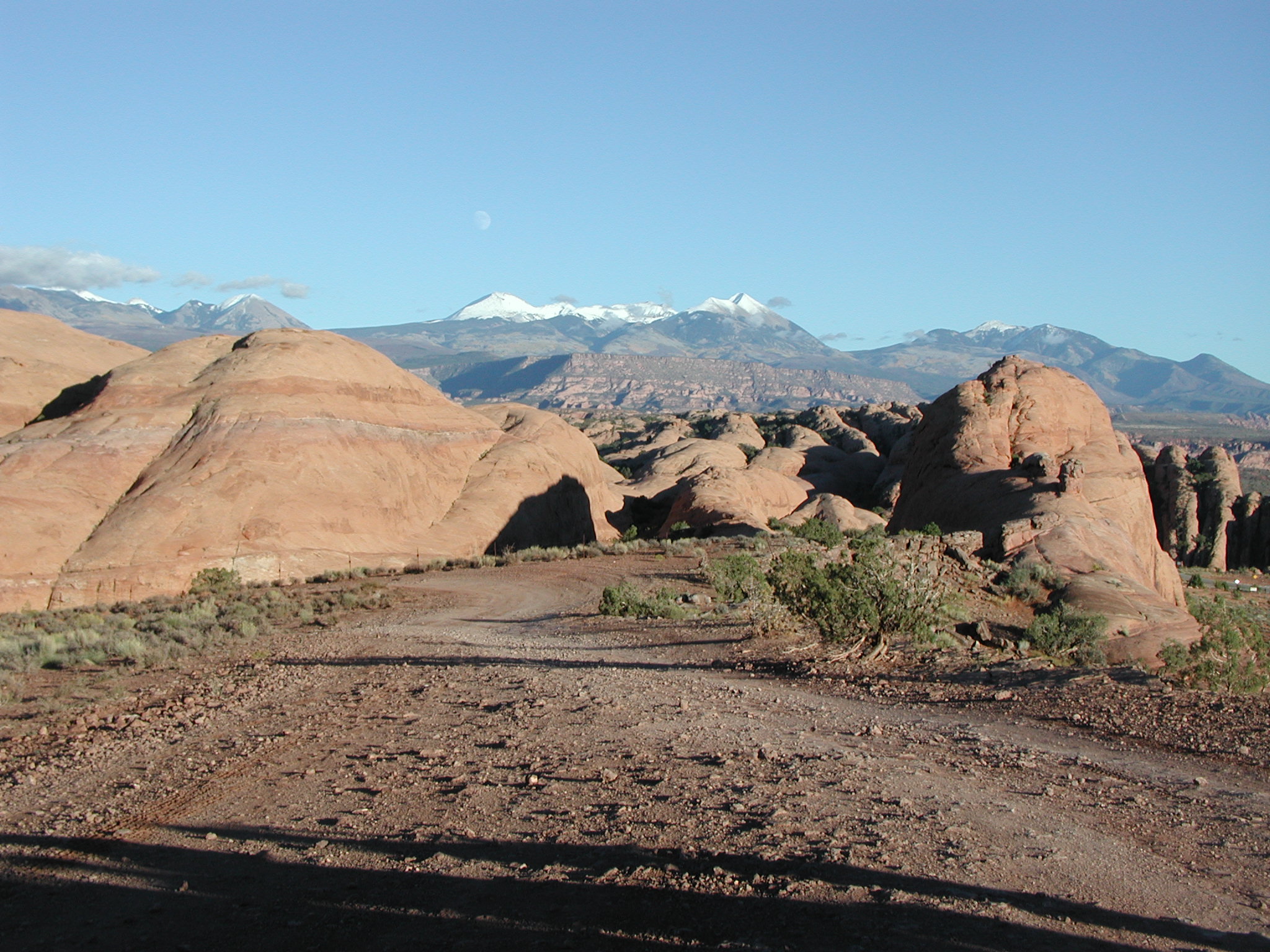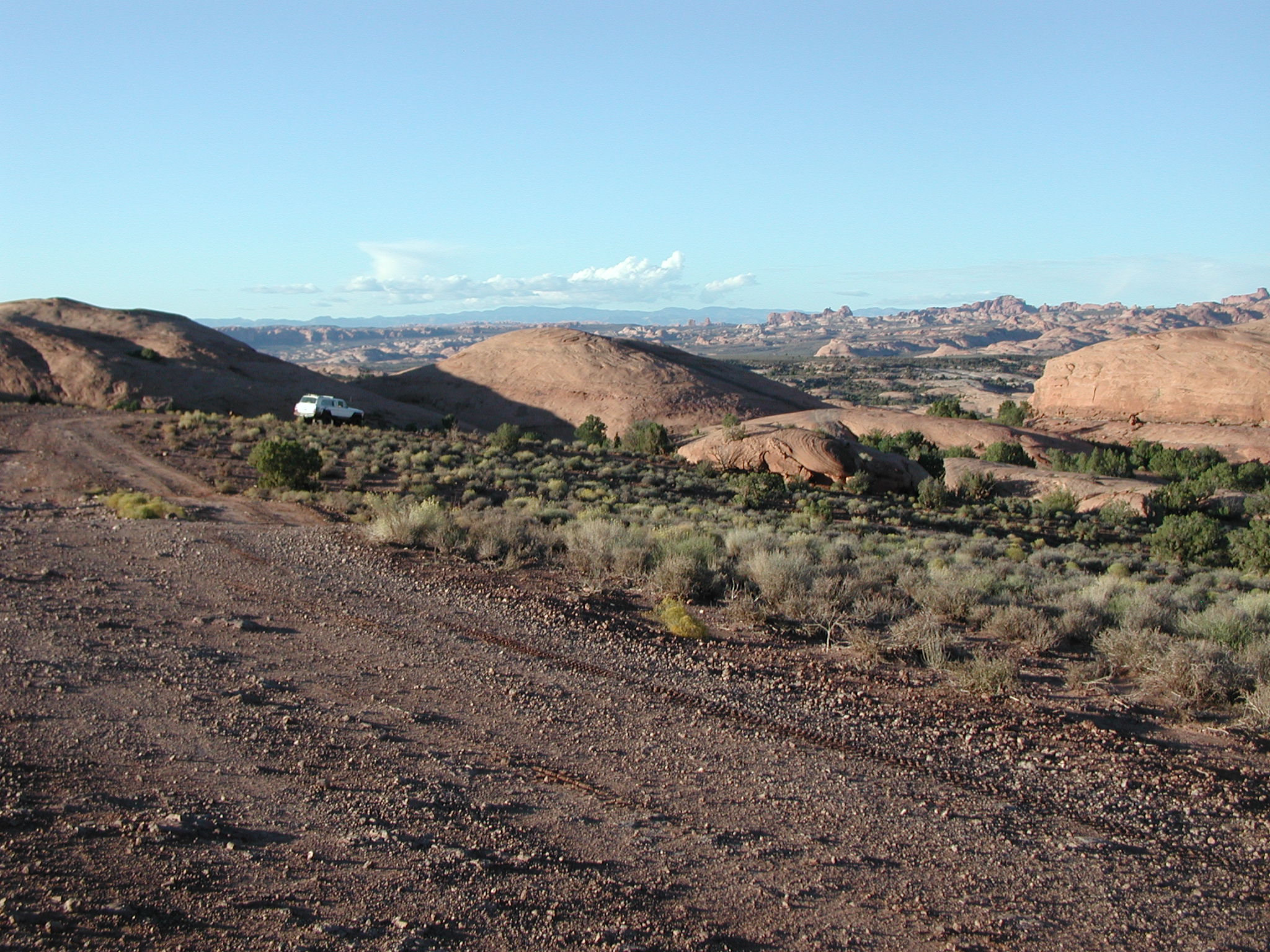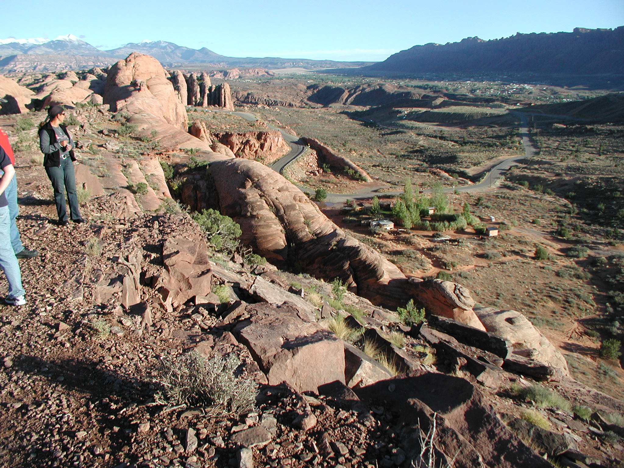 | The photo at right was taken just before we left the road on the 2 hour sunset tour. That's not us on top of that skinny rock, but we followed that same trail. |